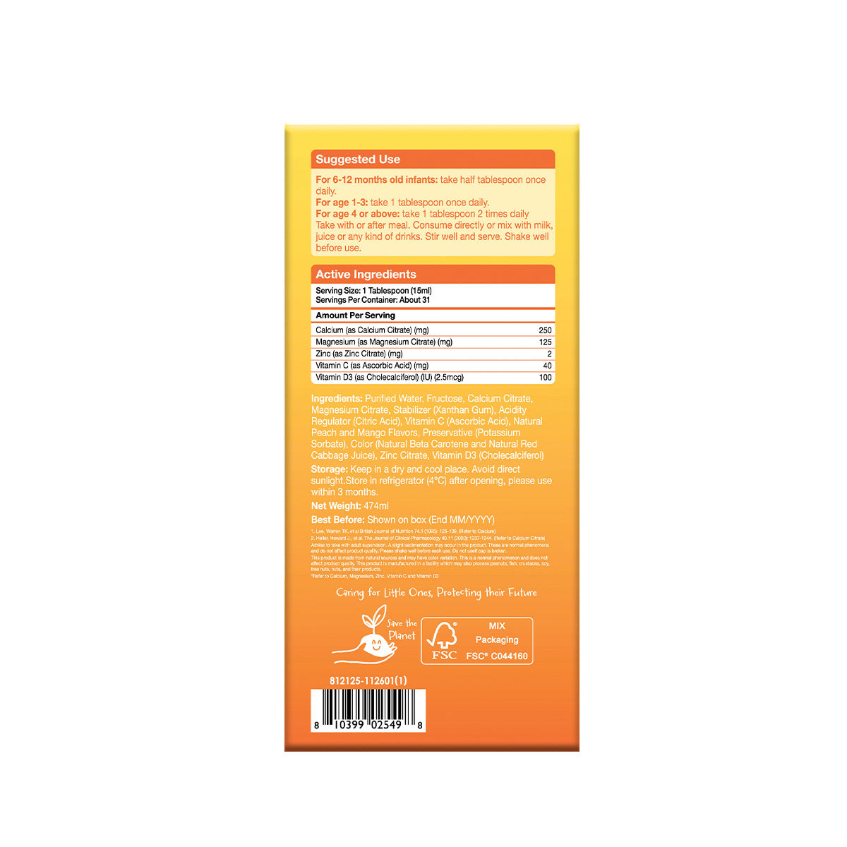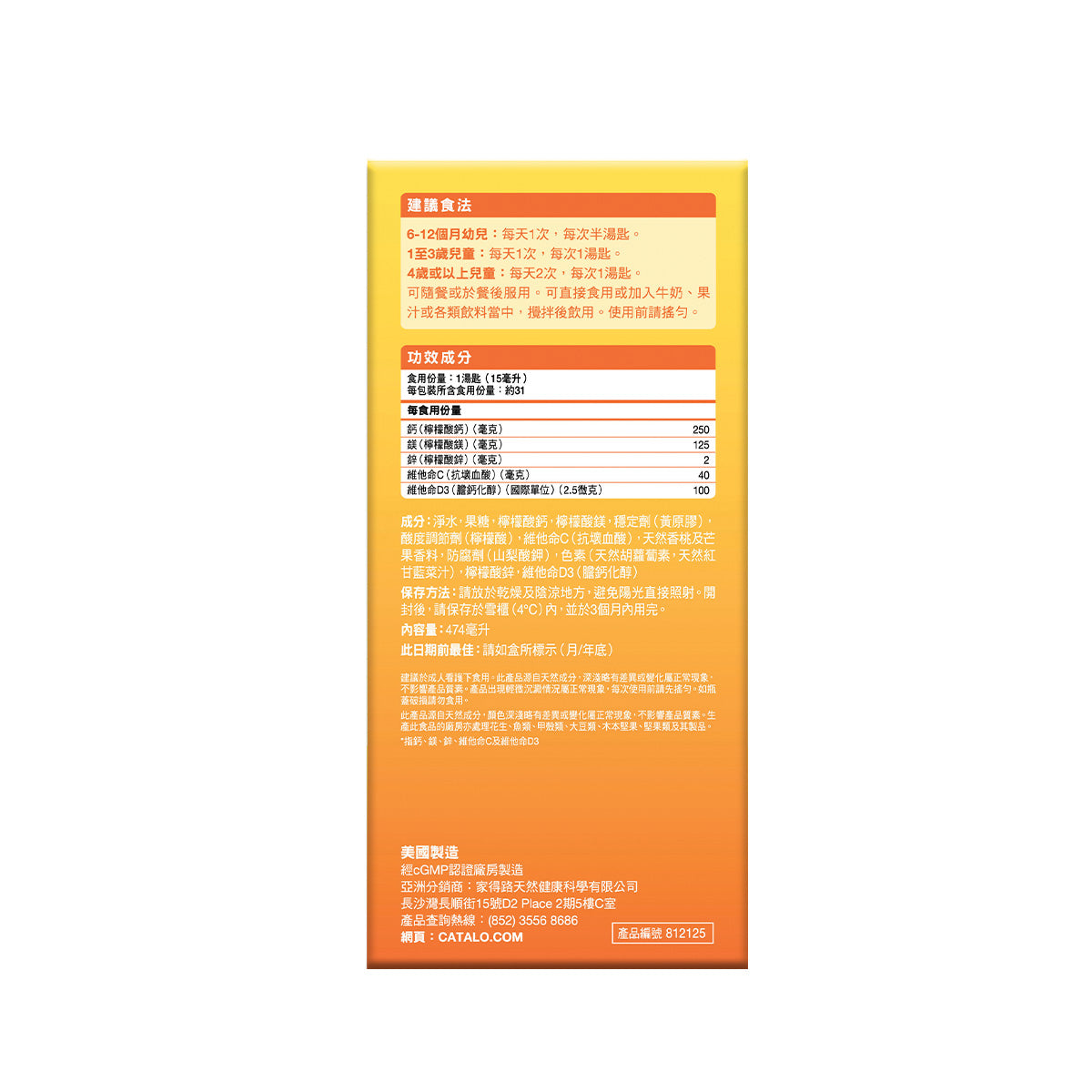 兒童成長強骨液體鈣鎂鋅+維他命C & D3 474毫升